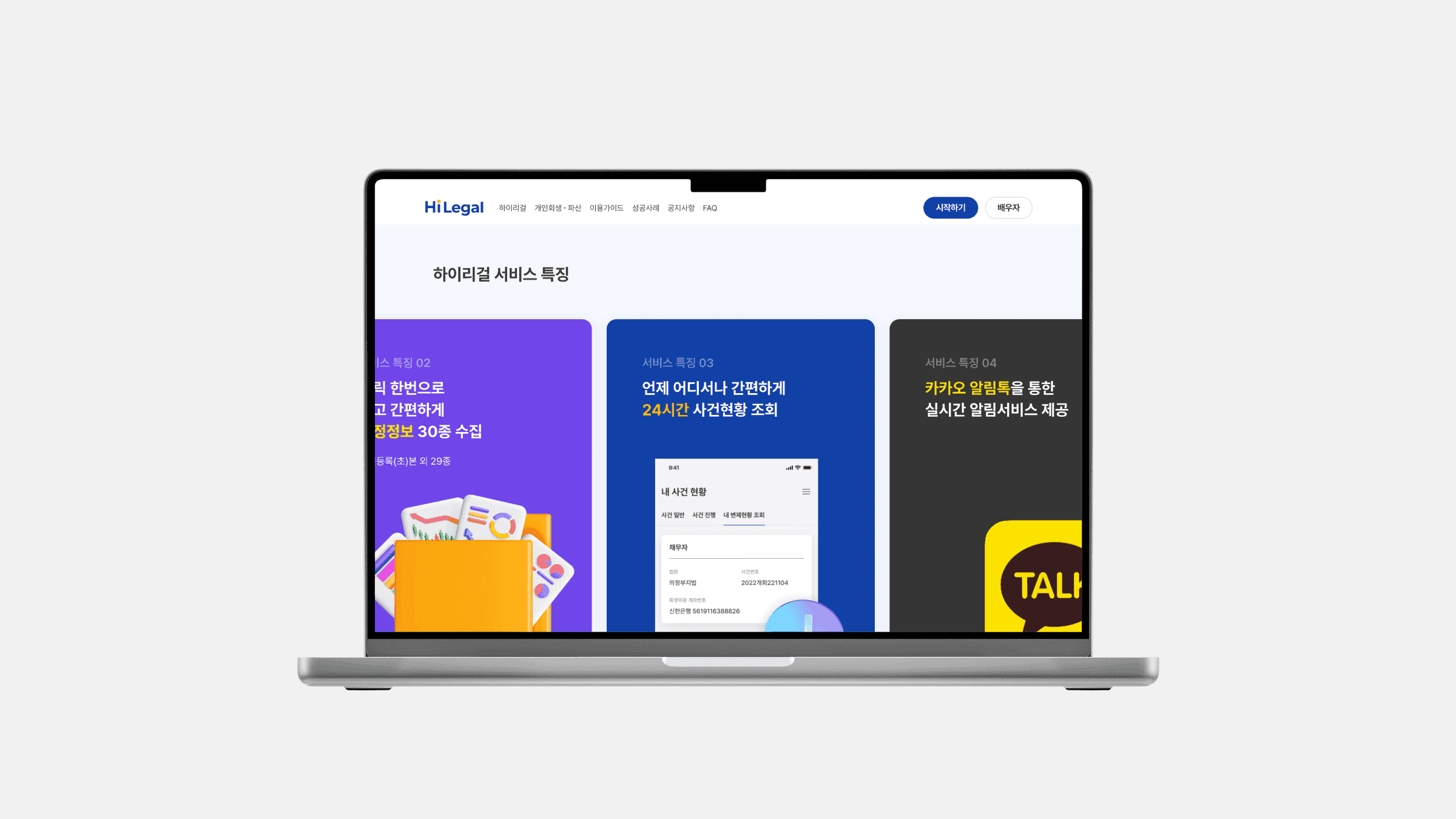 A legal tech platform that digitizes the offline process of personal bankruptcy and rehabilitation. The project covered end-to-end planning, UX/UI design, and admin dashboard development to simplify a legally complex service. By integrating MyData APIs, the platform automates data input and streamlines multi-step procedures, enabling users to access essential legal support online with greater ease and clarity.