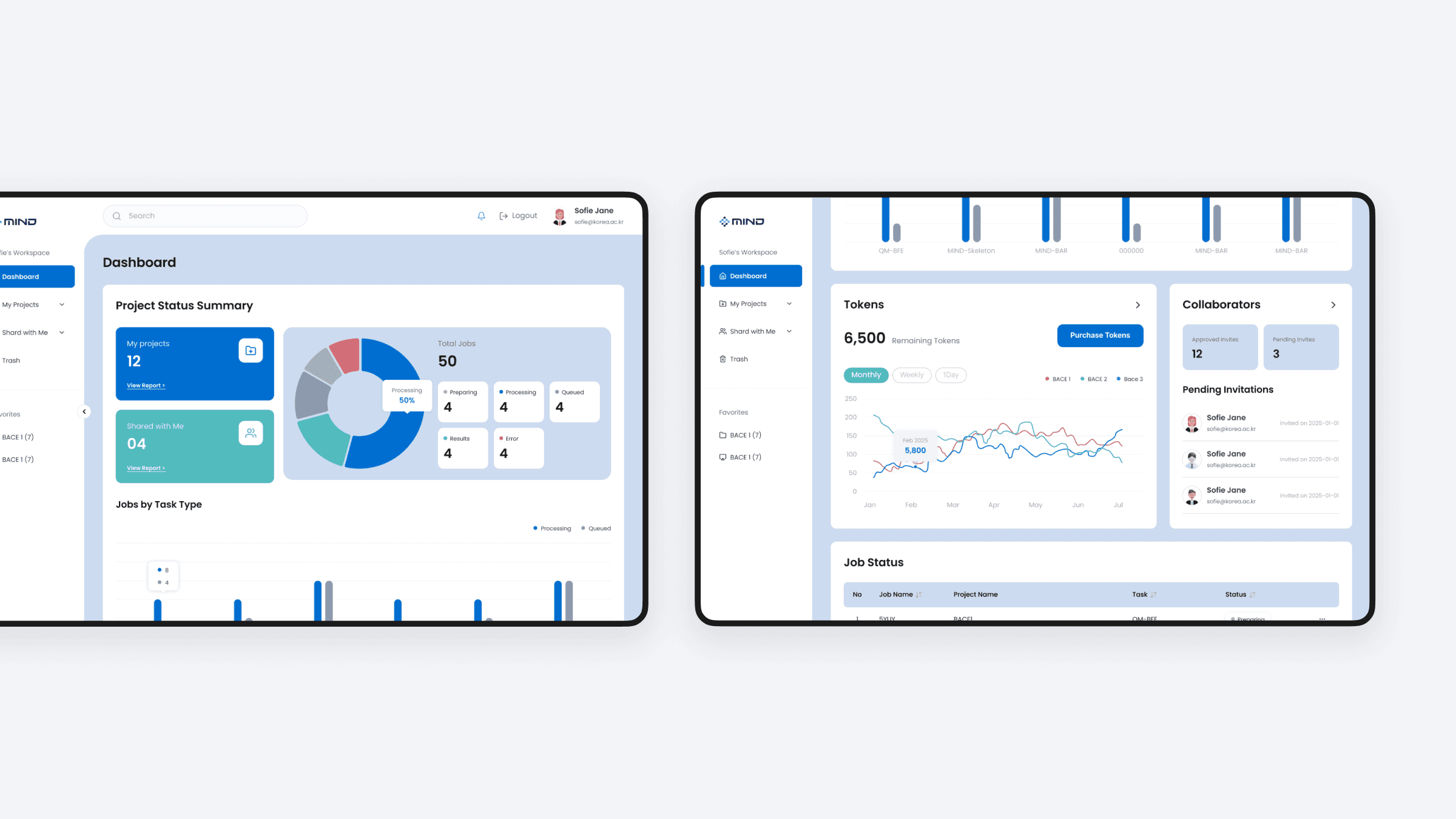 MIND는 단백질과 리간드 간 상호작용 구조를 분석하는 웹 기반 플랫폼입니다. HEYUHM은 전체 서비스의 기획과 UX 디자인을 주도했으며, 글로벌 사용자를 타겟으로 한 영어권 서비스를 구축했습니다. 복잡한 분자 구조를 직관적으로 조작할 수 있도록 다양한 패널 기반의 컨트롤 환경을 설계하여, 사용자가 효율적으로 데이터를 탐색하고 조정할 수 있도록 했습니다. 개발은 외부 파트너사와 협업으로 진행되었습니다.