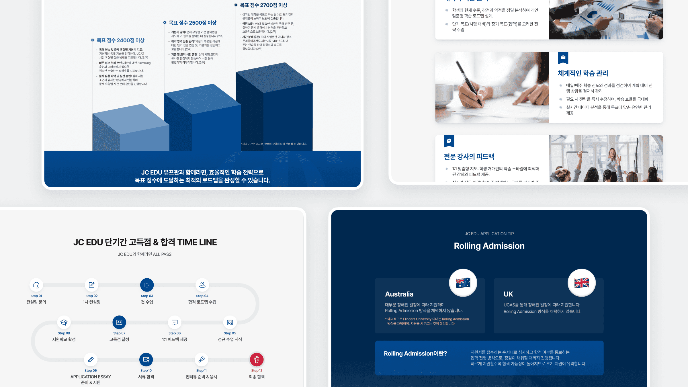 국내 1위 의치대 전문학원 JCEDU의 유학소개 사이트를 구축하였습니다. 다양한 페이지들의 디자인을 담당하여 사용자 친화적이고 정보 전달이 용이한 웹사이트를 구현하였으며, 효율적인 콘텐츠 관리를 위한 어드민 페이지도 함께 제작하였습니다.